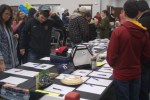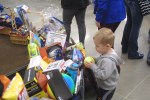 A curious lad looks over donated items for the auction Friday, March 24, during the grand opening celebration for the Gil and Donna White Charles City FFA Enrichment Center building at the Floyd County Fairgrounds. — photo by Chris Baldus