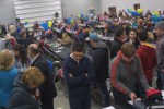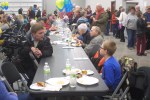 Charles City FFA members sell raffle tickets for a hand-made quilt, a rifle and a shotgun Friday, March 24, during the grand opening celebration for the Gil and Donna White Charles City FFA Enrichment Center building at the Floyd County Fairgrounds. — photo by Chris Baldus