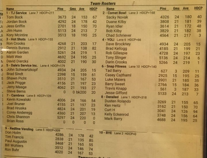 - Handicap series — Dale’s Service Inc., 3,603; Hot shots, 3,577; Comet Bowl, 3573
