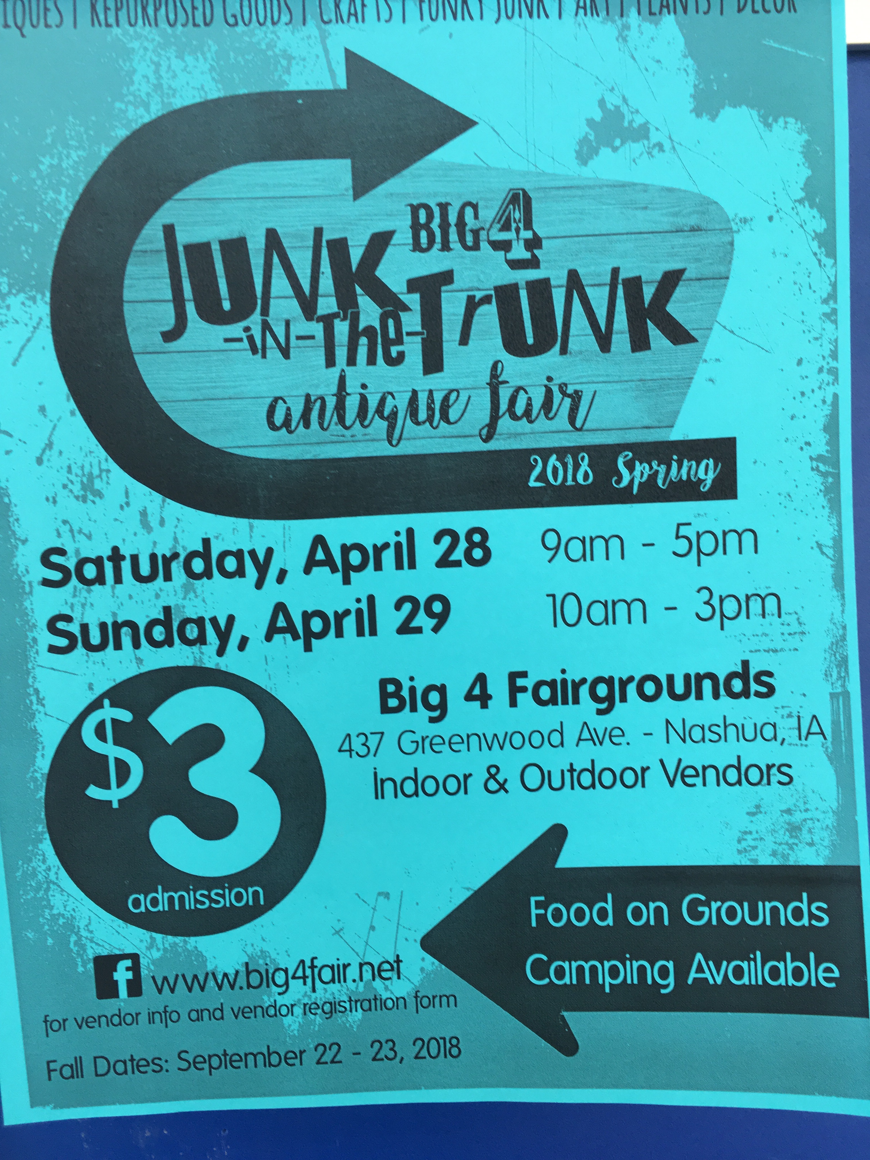 NASHUA — The Big 4 Junk in the Trunk antique fair will be April 28-29 at the Big 4 Fairgrounds, 437 Greenwood Ave., Nashua.