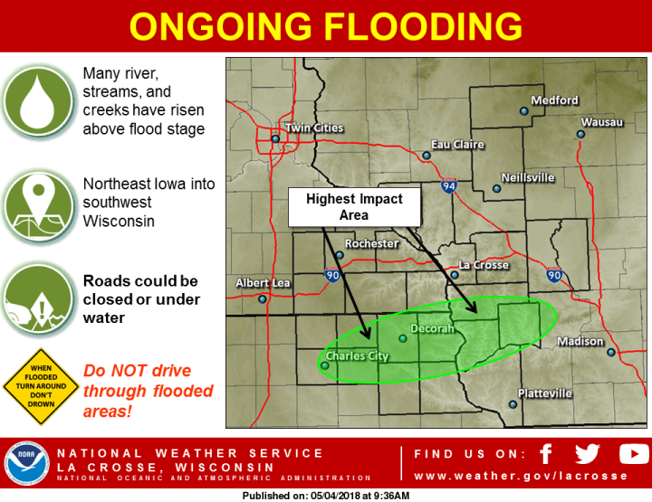Area rivers are on the rise after the drenching rain Thursday night. Charles City recorded 2.87 inches at the airport. Nashua saw 3.45 inches, according to preliminary data. More important to area flooding is the 3 inches that fell upstream in Osage and less than an inch in Austin, Minn.