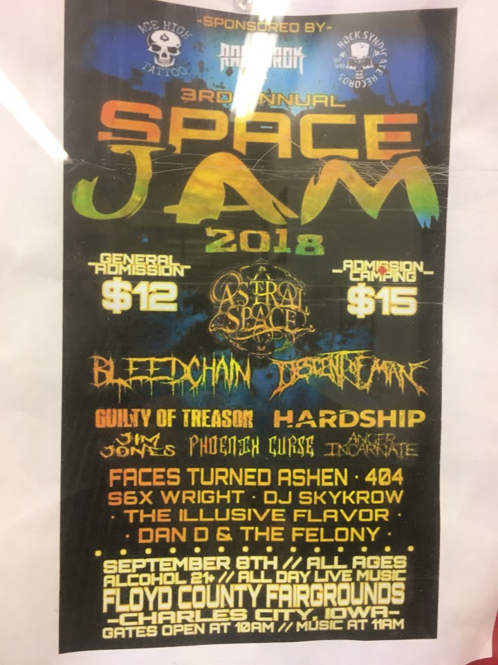 CHARLES CITY — The Floyd County Fairgrounds will rock Saturday, Sept. 8. The gates will open at 10 a.m. for the local music festival “Space Jam.” Live music begins at 11 a.m. General admission is $12. Admission and camping is $15.