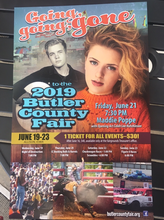 ALLISON, Iowa — “American Idol” winner Maddie Poppe will perform at the Butler County Fair, which runs from June 19-23 at the Fairgrounds in Allison.