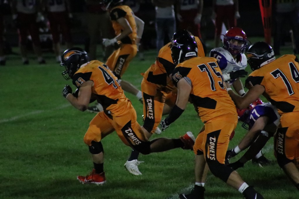 The Comets were poised to tie the game at 7 when Mario Hoefer hauled in a deep pass from Comets quarterback Alex Staudt. The Comets had a first and goal on the 1 yard line, when they fumbled into the endzone.