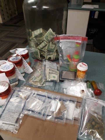 Multiple agencies were on hand during the search that began just before 10 p.m. Illegal substances found and seized include methamphetamine, marijuana, pills and unidentified substances, the news release says. The cash was in close proximity to the drugs.