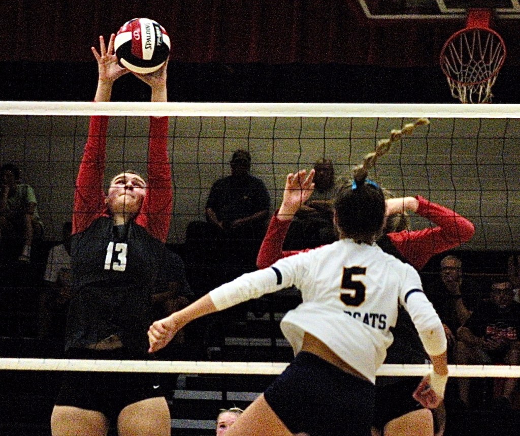 Paige Ripley (2) tips the ball over the net to win a point against North Butler at home Tuesday, Sept. 20.