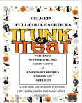 2. TRUNK OR TREAT TODAY — Full Circle Services Trunk or Treat will be 5-8 p.m, Oct. 19, at the Knights of Columbus parking lot in Oelwein. Popcorn, hot cocoa and lots of goodies.