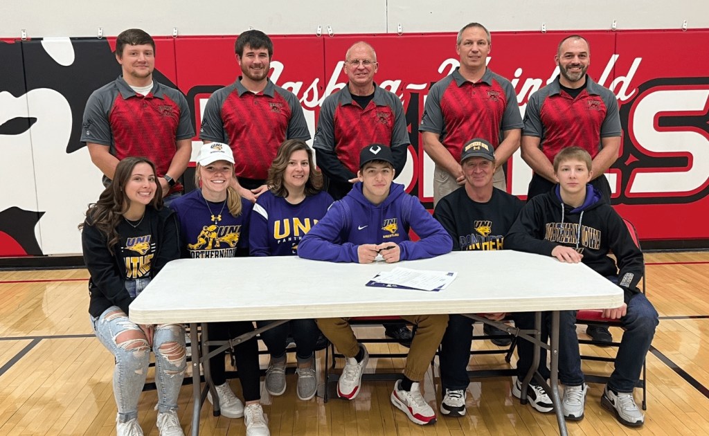 Nashua-Plainfield senior Garret Rinken signed his National Letter of Intent on Monday to continue his wrestling career at the University of Northern Iowa next year.