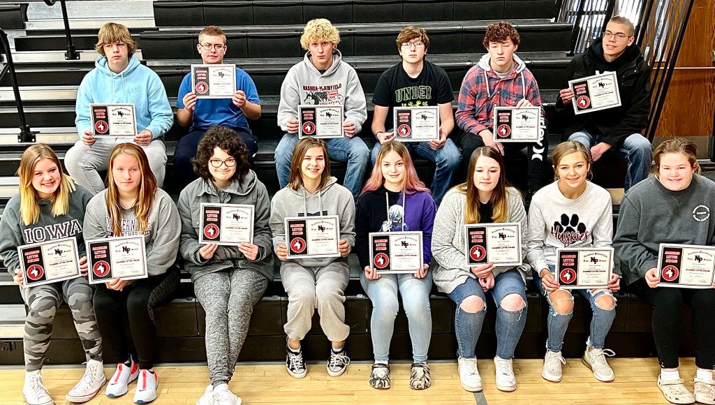9th Grade — Ty Berger, Bailey Bond, Maverick Dietz-McDonald, Faith Franzen, Paige Franzen, Grace Gelner, Amberley Gerholdt, Josslynn Glaser, Zachary Hauser, Kadence Huck , Cale Jensen, Isaac Jones, Callahan Levi, Marleigh Lowe , Jennifer McLeland, Avery Novak, Luke Paplow, Easton Richards, Jayden Rinken, Quinton Rosol and Caleb Sinnwell