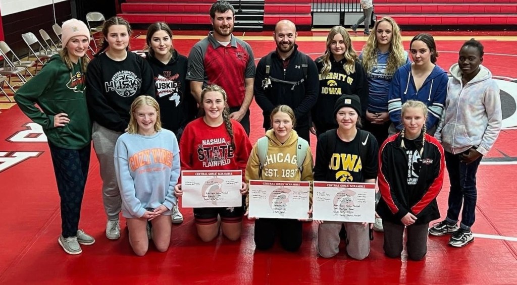The Nashua-Plainfield girls wrestling team traveled to Elkader on Monday and brought home three individual first-place finishes from the Central Scramble tournament.