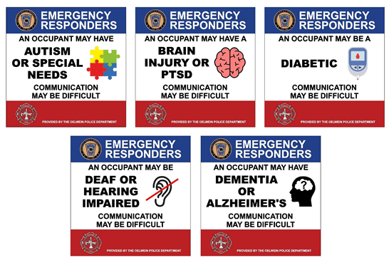 “When our officers, fire members, and ambulance crews arrive at an incident, those moments are often times of high stress for the occupants. These window stickers will provide quick and effective information to responders at critical times,” said Public Safety Chief Jeremy Logan. “By having access to a potential special circumstance, responders are better equipped to assist our community members, and therefore can result in a more positive outcome.”