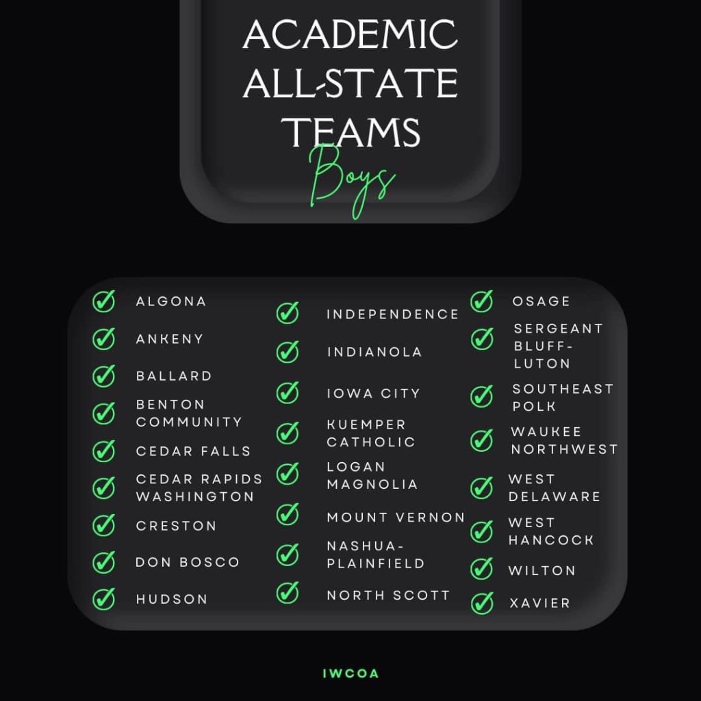 Nashua-Plainfield’s boys wrestling team, which placed third in State Duals and at the Traditional State Tournament, is among the IWCOA Boys Academic All-State Teams. These teams met an average of 3.25 or above.