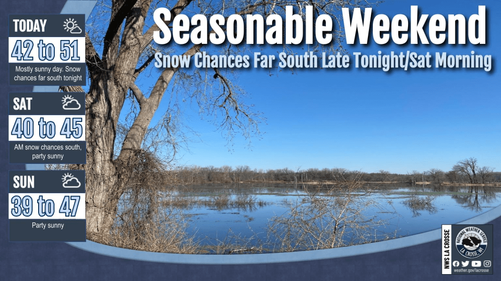 Saturday: Mostly cloudy, with a high near 47. Northwest wind 7 to 11 mph.