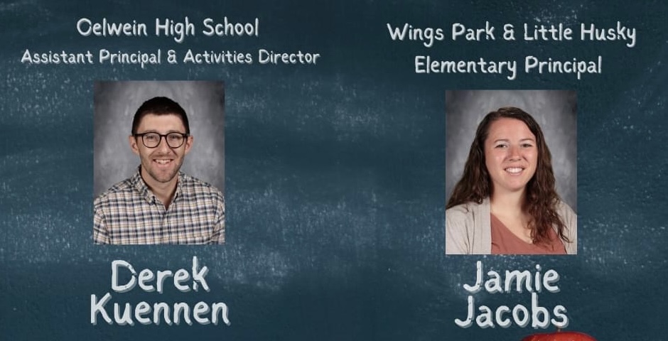 Derek Kuennen and Jamie Jacobs will have new positions in the Oelwein School District next year Kuennen will be the high school’s assistant principal and activities director. Jacob’s will be the Wings Park and Little Husky principal,