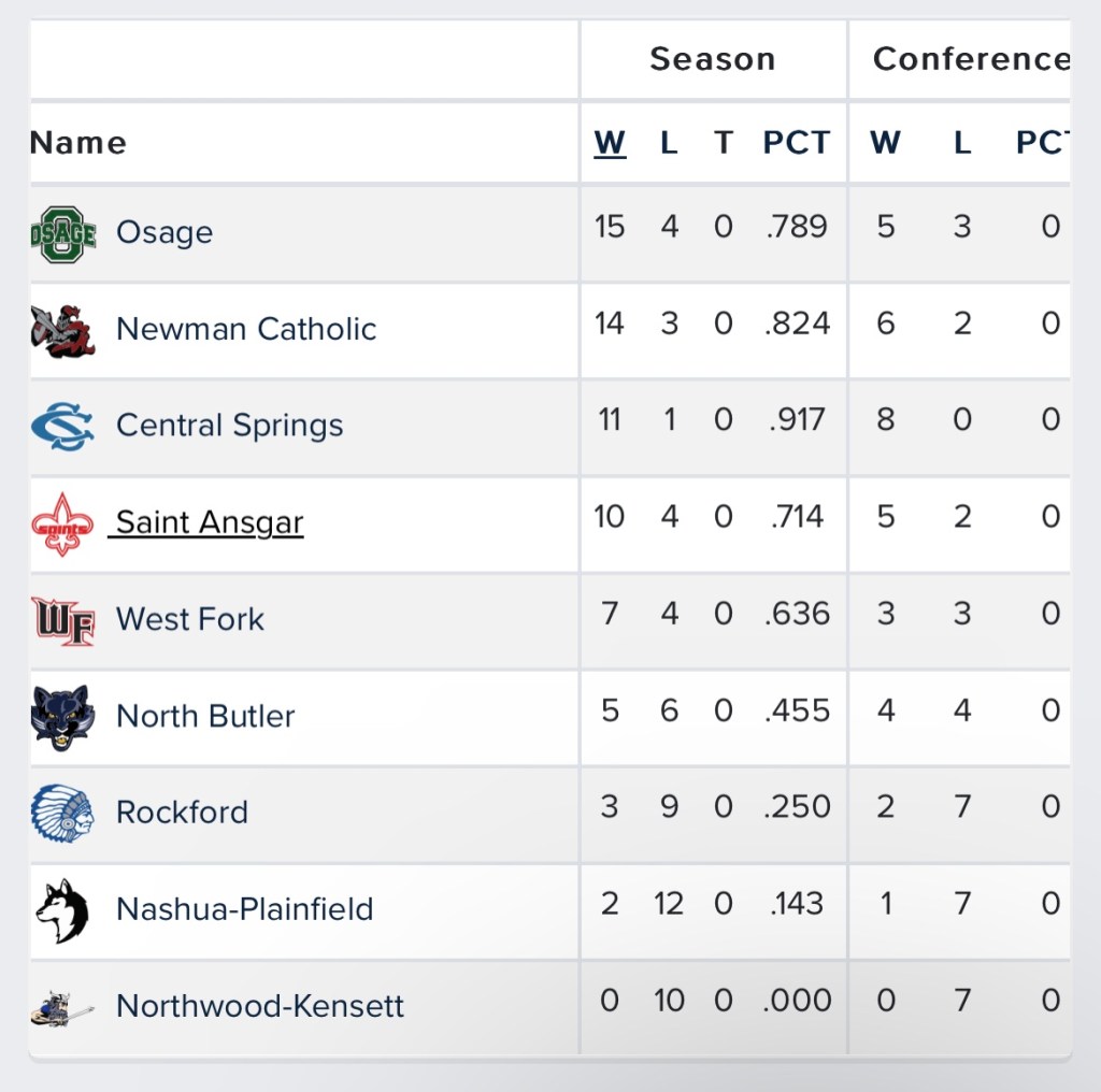 - Newman Catholic 8, Mason City 3 — The Knights improved to 12-1. Mason City is 3-6.