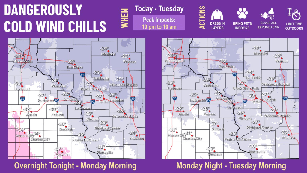 The coldest wind chills are across portions of northeast Iowa and southeast Minnesota.